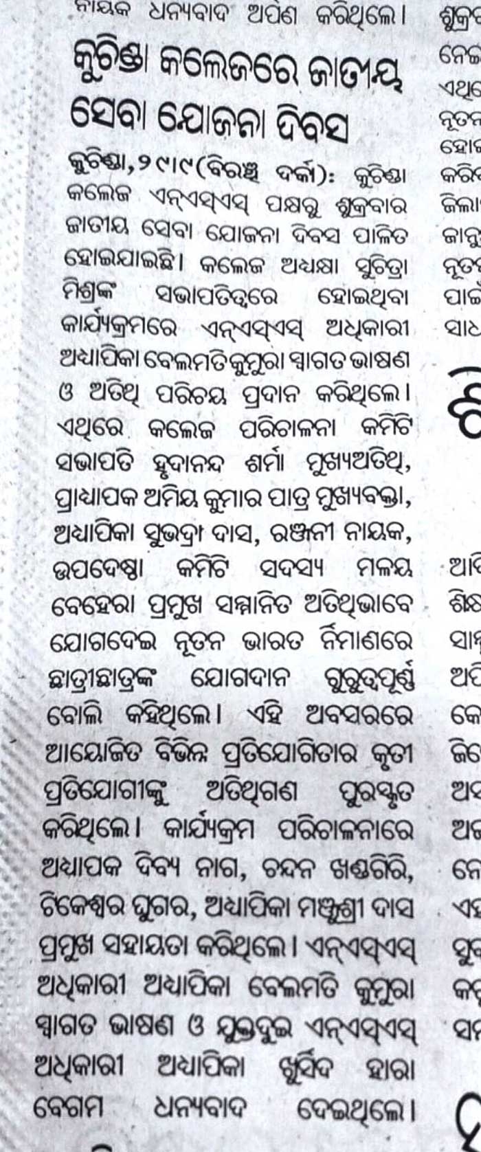Image Gallery ยป Observation of NSS DAY , KUCHINDA COLLEGE, KUCHINDA.